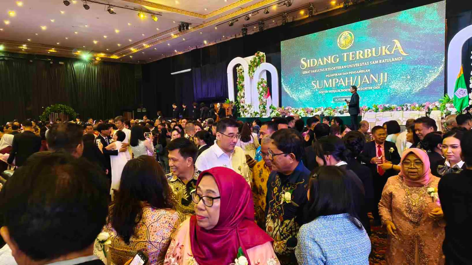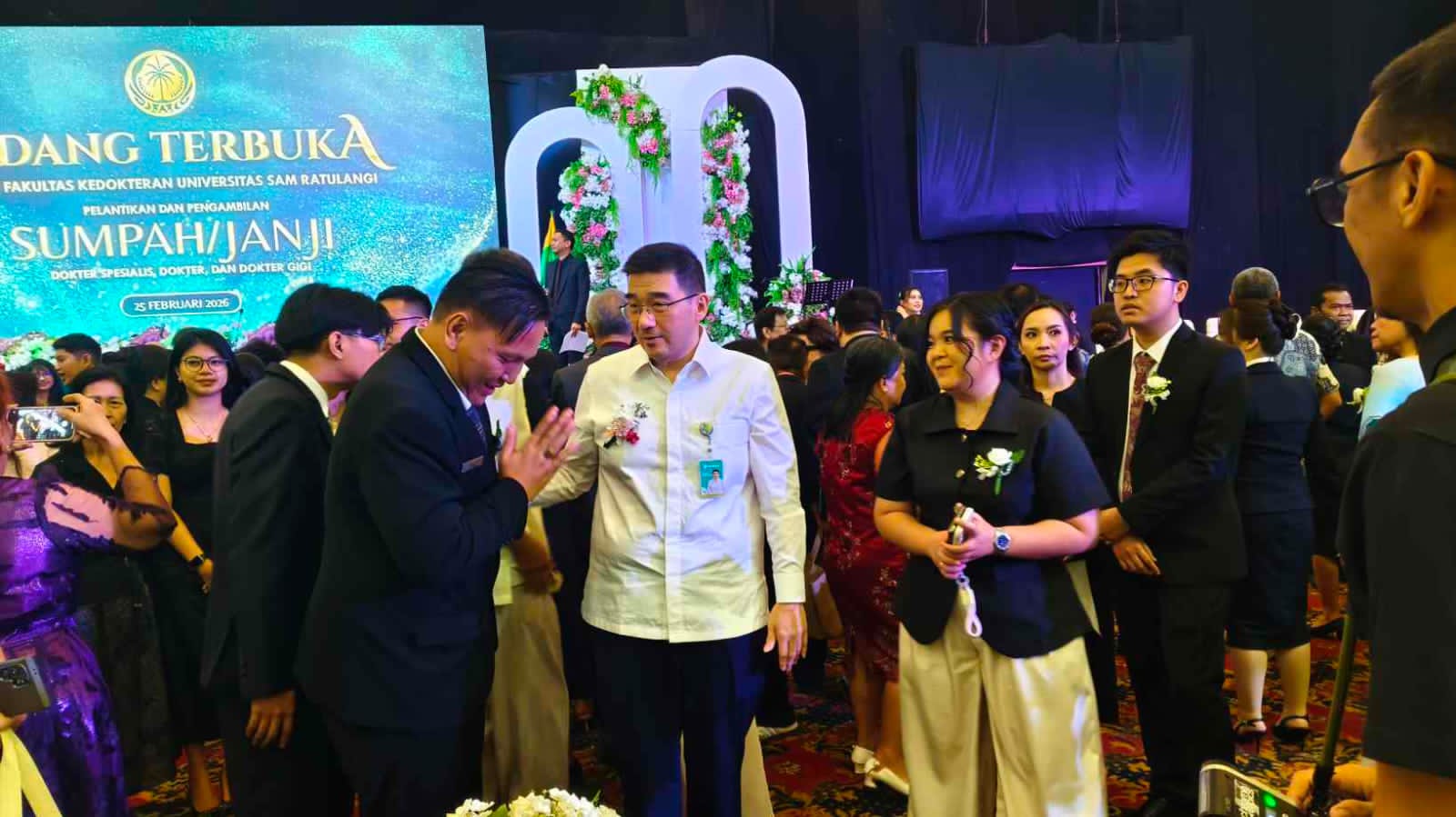 RSUPKANDOU.GO.ID, MANADO – Direktur Utama RSUP Prof. Dr. R.D. Kandou Manado, Prof. Dr. dr. Starry Rampengan, Sp.JP(K), FIHA, MARS, menghadiri Pelantikan dan Pengambilan Sumpah Janji Dokter Spesialis, Dokter dan Dokter Gigi Fakultas Kedokteran Universitas Sam Ratulangi (Unsrat), yang digelar dalam Sidang Terbuka Senat FK Unsrat, Rabu (25/2/2026), di Manado Convetion Center (MCC).