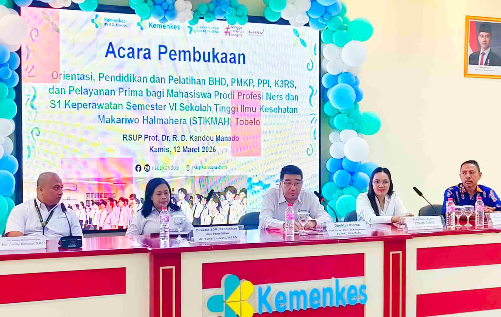 Hal itu disampaiakan Direktur Utama RSUP Prof. Dr. R. D. Kandou Manado, Prof. dr. Starry H. Rampengan, Sp.JP(K), FIHA, saat membuka kegiatan Orientasi, Pendidikan dan Pelatihan bagi mahasiswa Profesi Ners dan S1 Keperawatan Sekolah Tinggi Ilmu Kesehatan Makariwo Halmahera (STIKMAH) Tobelo, Kamis (12/3/2026).