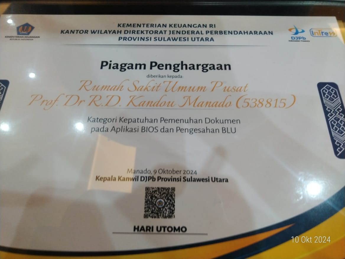 RSUP Prof. Dr. R.D. Kandou Manado Raih Dua Penghar