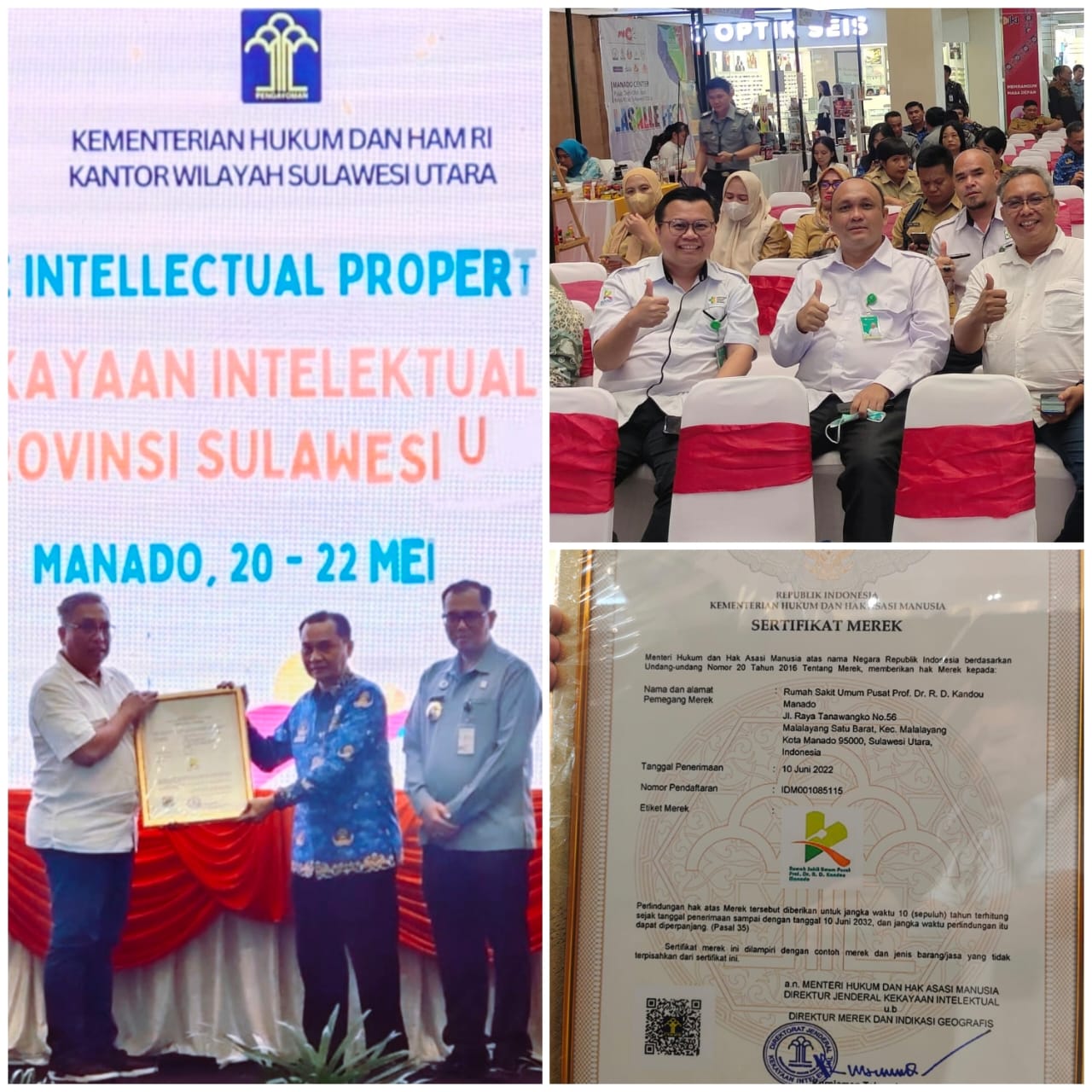 RSUP Kandou Terima Sertifikat Hak Merek Dari Kemen